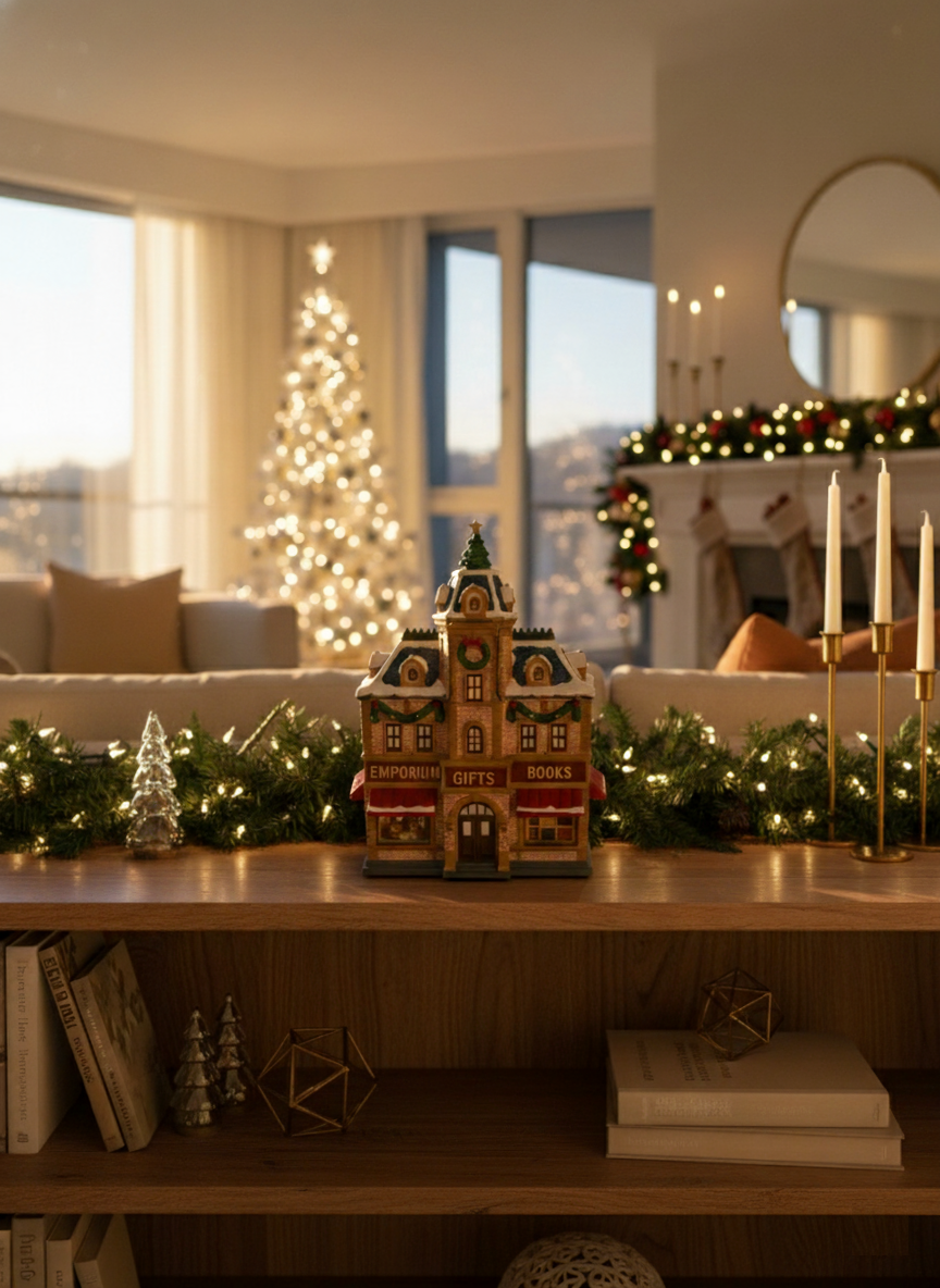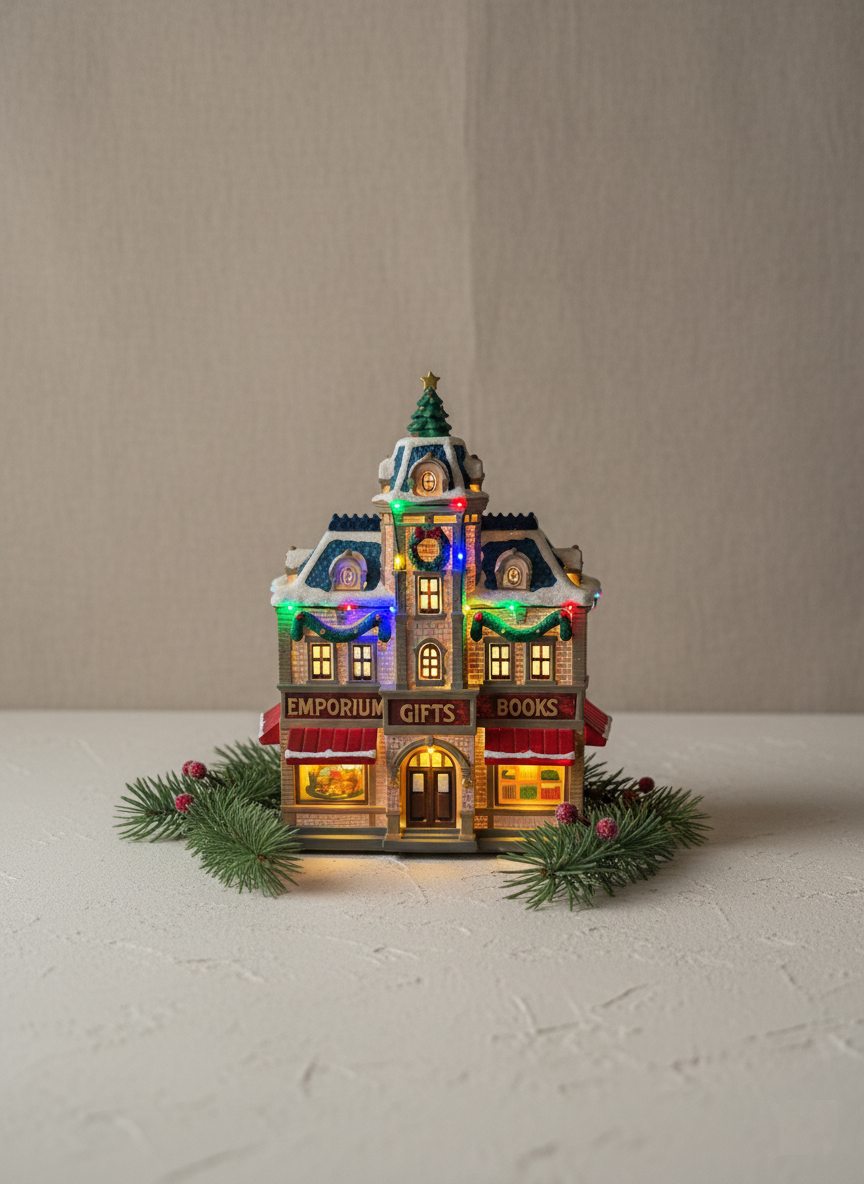 Bring the magic of the holidays and the memories that come with them to life in your home. The Emporium Gift Shop miniature is hand-painted and adorned with glowing festive lights, crafted with care and quality in every detail. A timeless piece that captures the warmth, wonder, and nostalgia of the season.